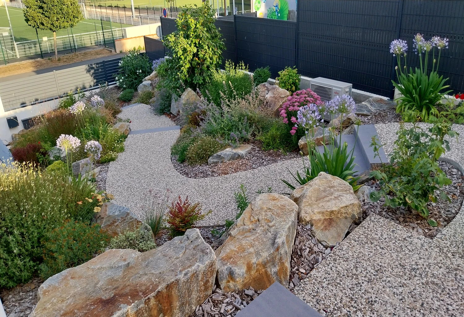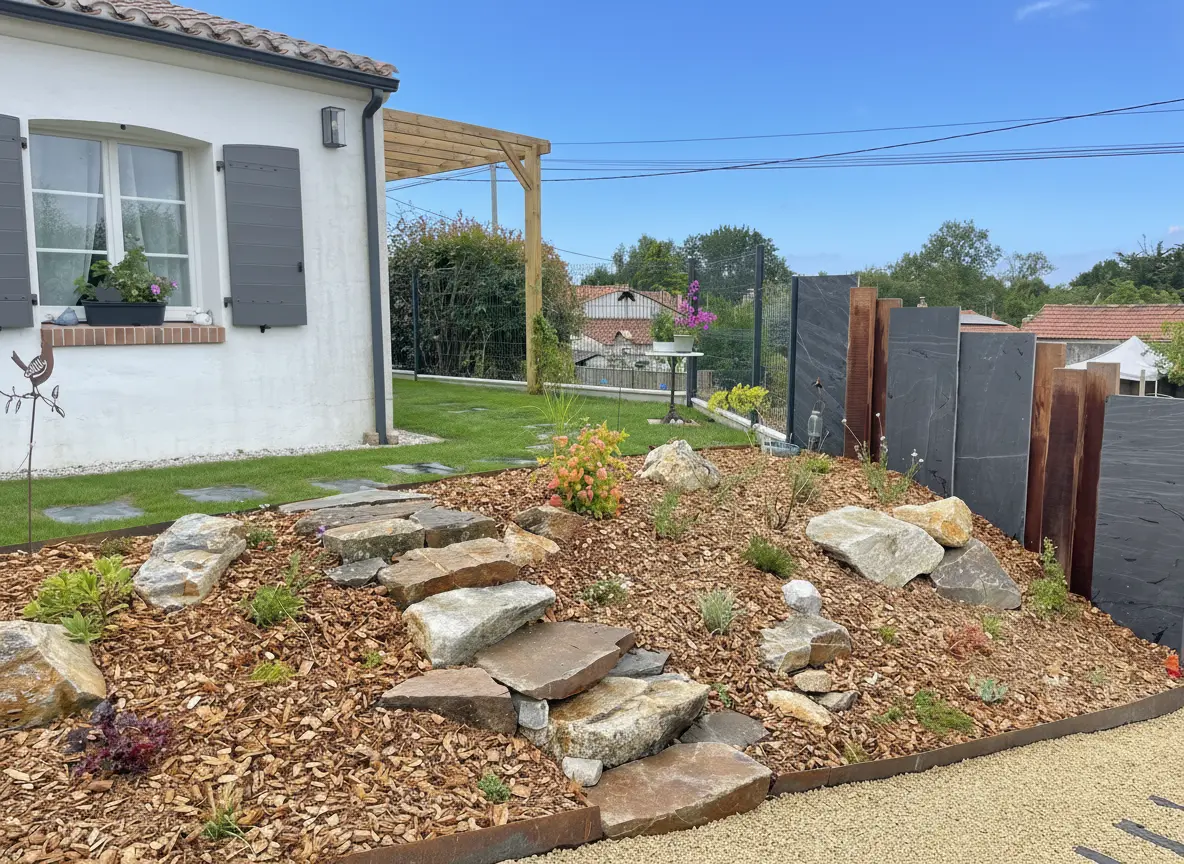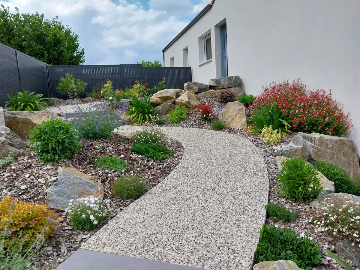 Nous pouvons vous proposer des massifs adaptés à l’exposition et au style de votre extérieur, en choisissant des végétaux harmonieux et durables. Nous réalisons également l’engazonnement de vos espaces verts. Pour structurer et donner du caractère à votre terrain, qu’il soit en pente ou plat, nous concevons des rocailles qui apportent du relief et subliment l’ensemble de votre aménagement extérieur.