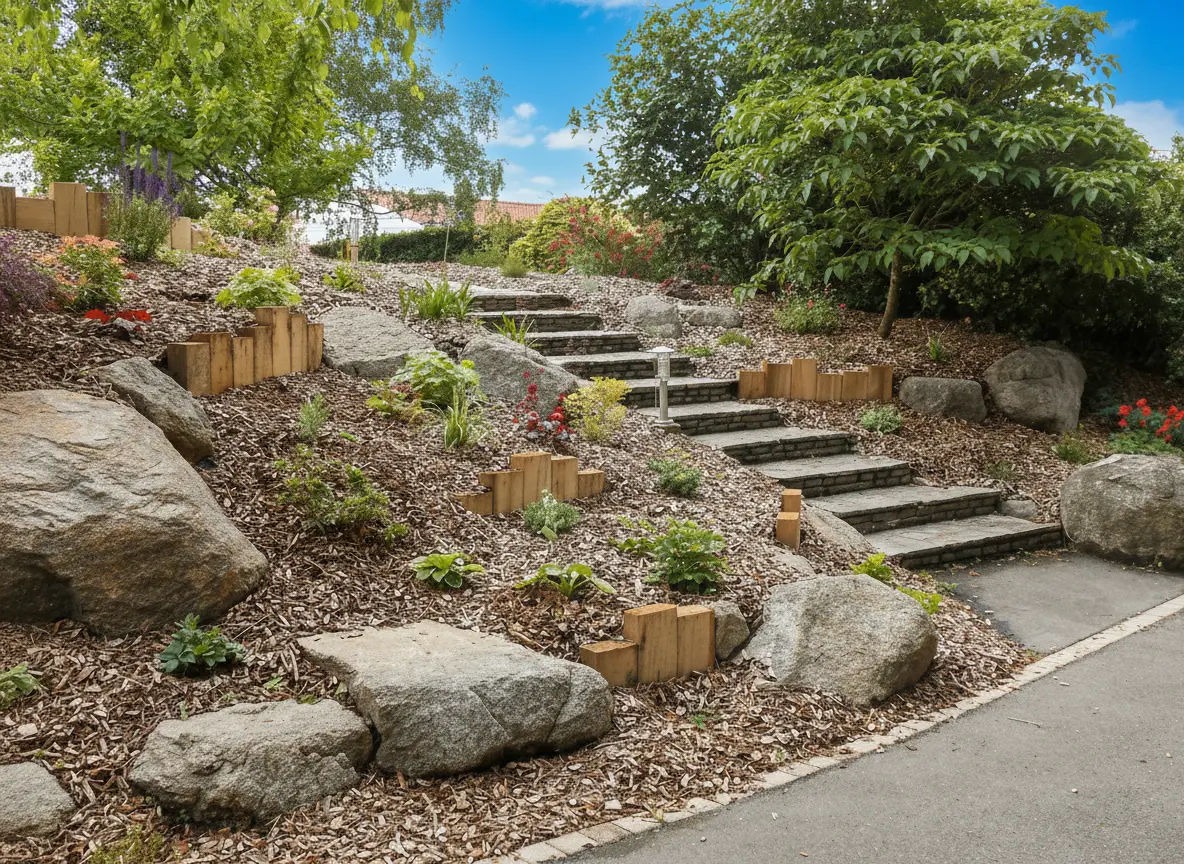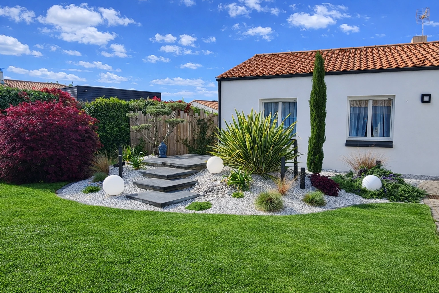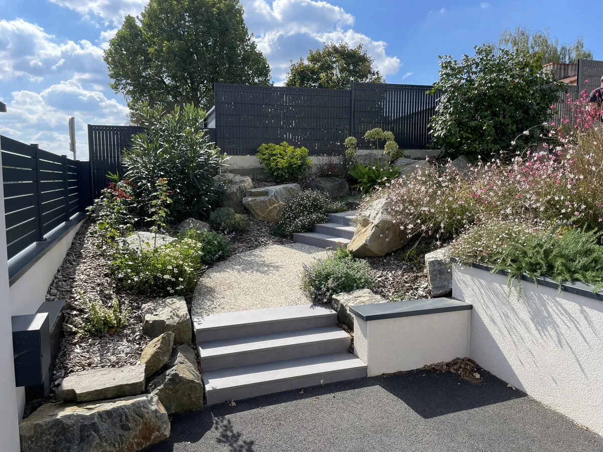 Nous pouvons vous proposer des massifs adaptés à l’exposition et au style de votre extérieur, en choisissant des végétaux harmonieux et durables. Nous réalisons également l’engazonnement de vos espaces verts. Pour structurer et donner du caractère à votre terrain, qu’il soit en pente ou plat, nous concevons des rocailles qui apportent du relief et subliment l’ensemble de votre aménagement extérieur.