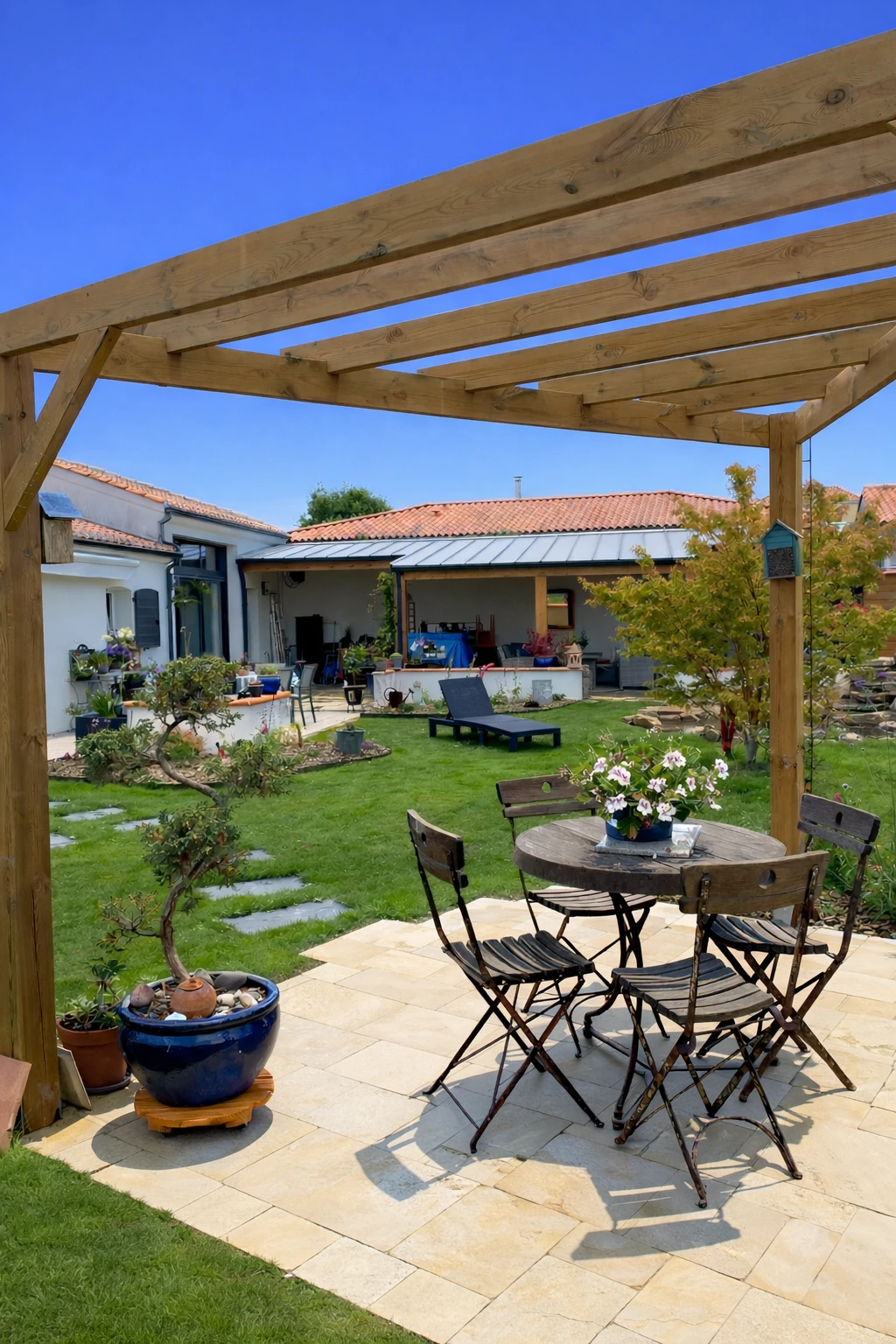 Nous réalisons tous autres types d’aménagements pour que votre extérieur soit à la fois esthétique et fonctionnel, bassins, fontaines ou cascades, des cabanons de jardin, des gazons synthétiques, pergolas, kiosques, carports, voiles d’ombrage, éclairage de jardin …